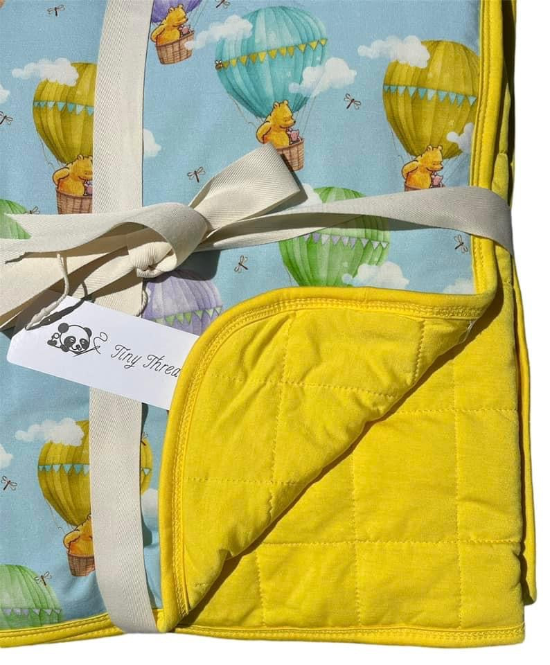 Our Quilted Blankets are super soft, double sided, and cut from our bamboo! They have a layer of padding in between them. These are offered in toddler size 40” x 60”